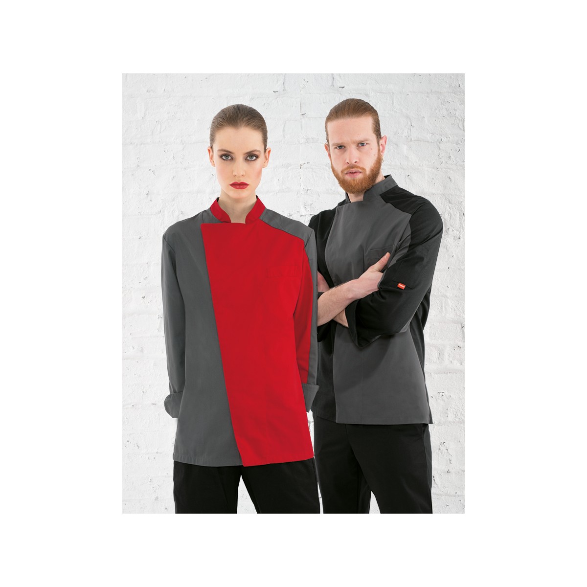 Giacca con taschino sul petto e sulla manica sinistra; bottoni a pressione.