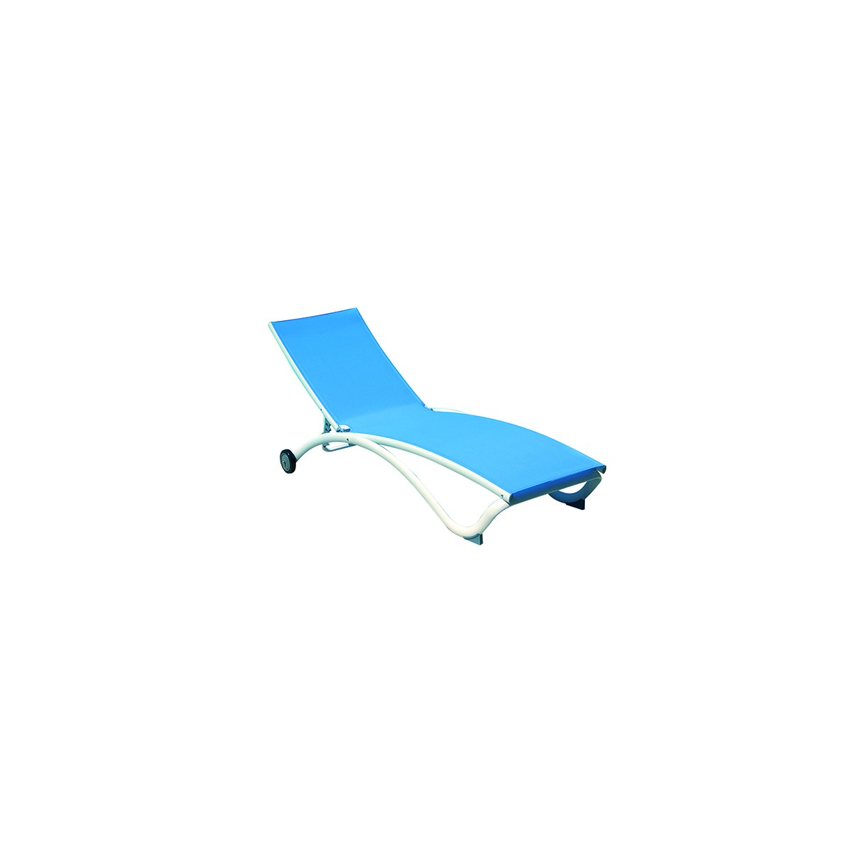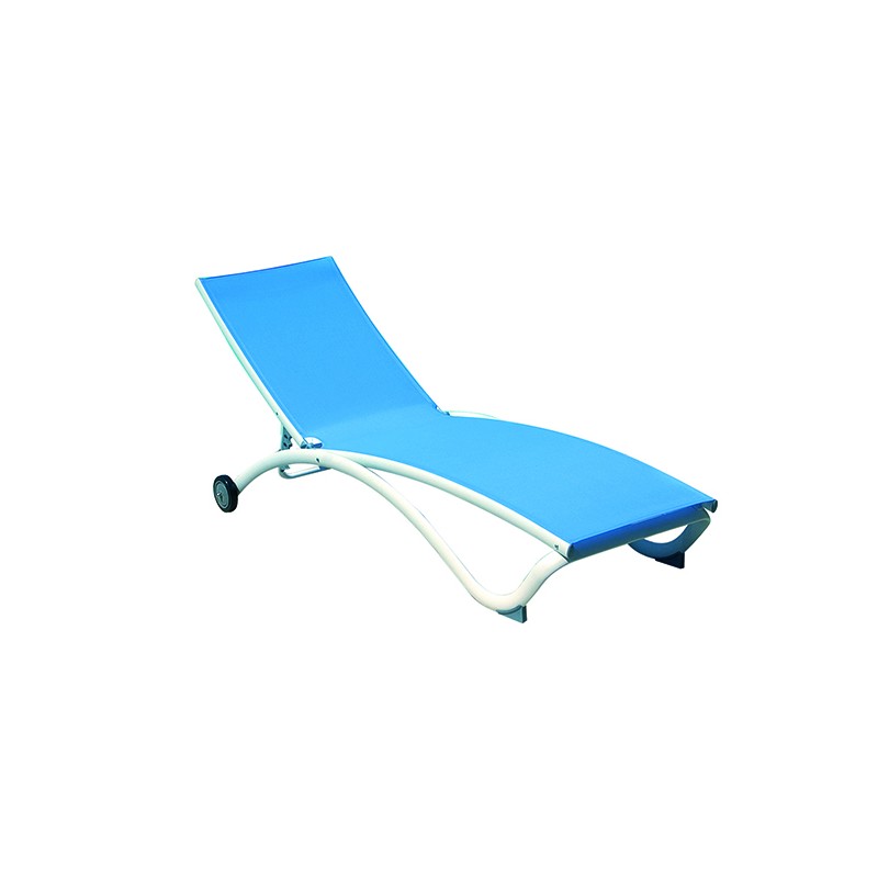 Lettino in alluminio bianco sandy con ruote e textilene azzurro