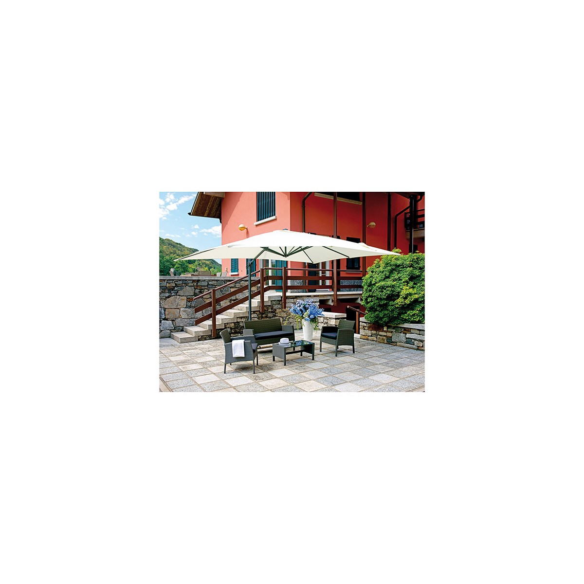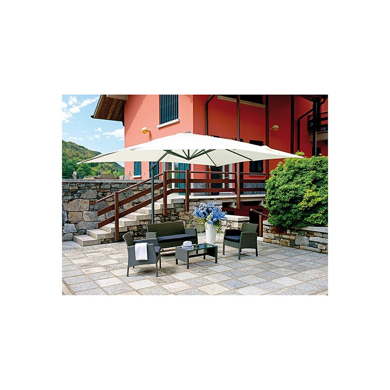 Ombellone 3x4 palo laterale - fusto ovale 77 mm in alluminio color antracite a 8 bacchette - apertura a manovella - con maniglione - poliestere 220 gr ecru' - ruotabile 360° - altezza max con base 2,73 m