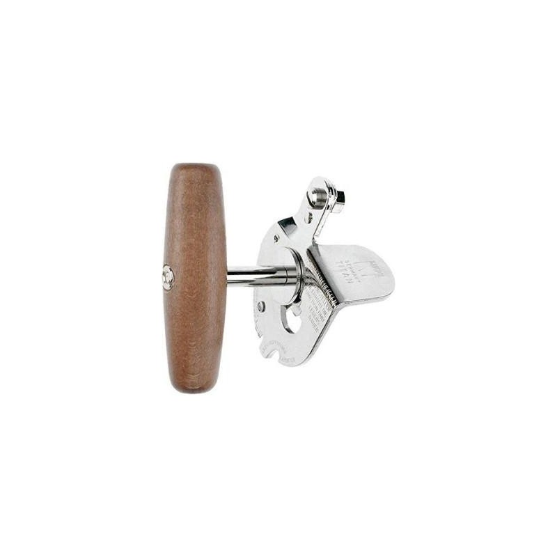 Apriscatole professionale 'Titan' ideale per barattoli da gastronomia e di grandi dimensioni lama e rotella in acciaio temprato e stagnato manovella in legno