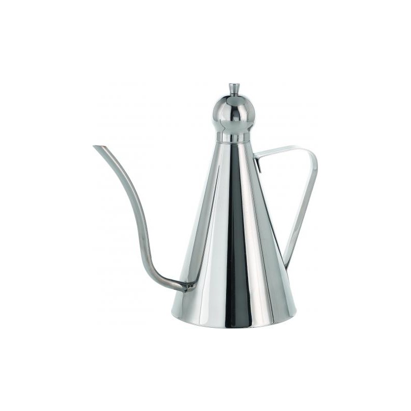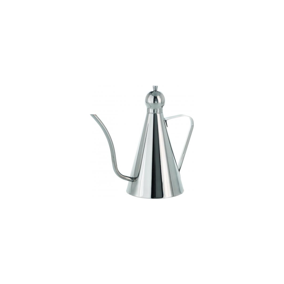 Oliera in acciaio inox. Il beccuccio lungo e sottile distribuisce in modo uniforme l’olio sulla superficie della pizza.