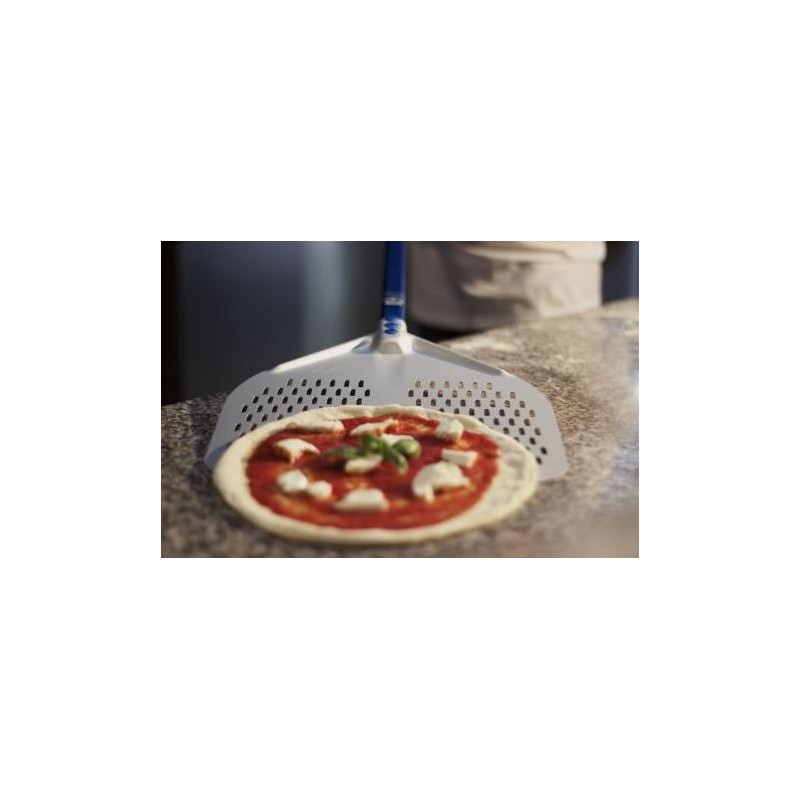 La superficie forata conferisce basso attrito e scarica la farina evitando che si attacchi sul fondo della pizza rischiando di bruciare.