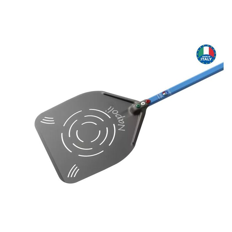 Pala pizza in alluminio anodizzato forata rettangolare 33x 33 cm manico 150 cm