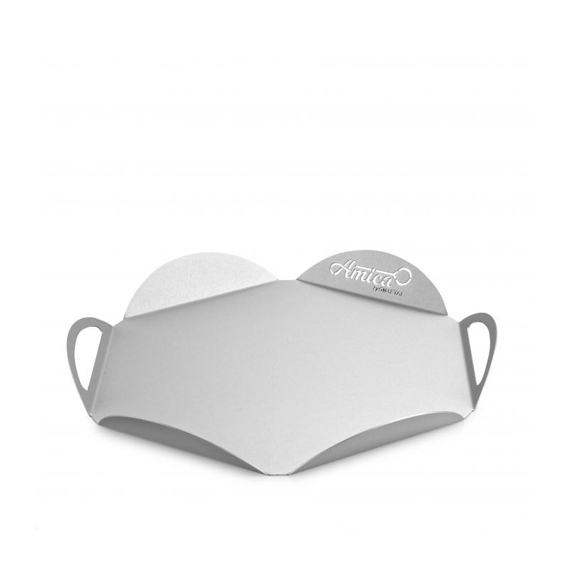 Il vassoio è impreziosito dal logo laserato “Amica by Gi.Metal” che lo rende unico.