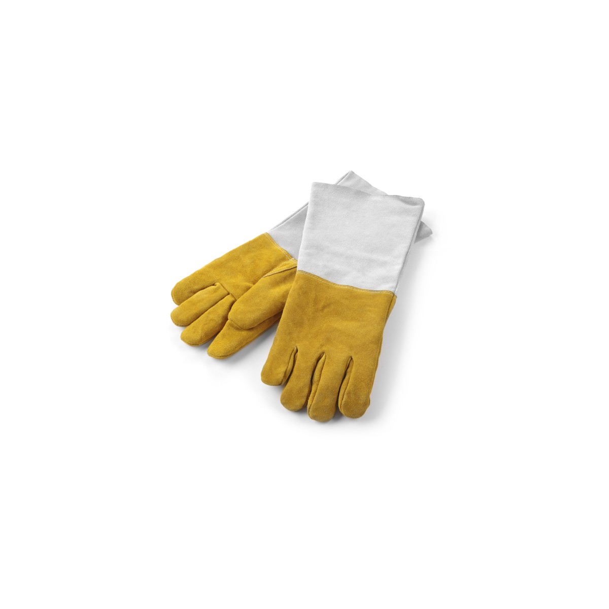 Resistente al calore fino a 250 ° C. Realizzato in pelle di vacca. Extra lungo per proteggere l'avambraccio.