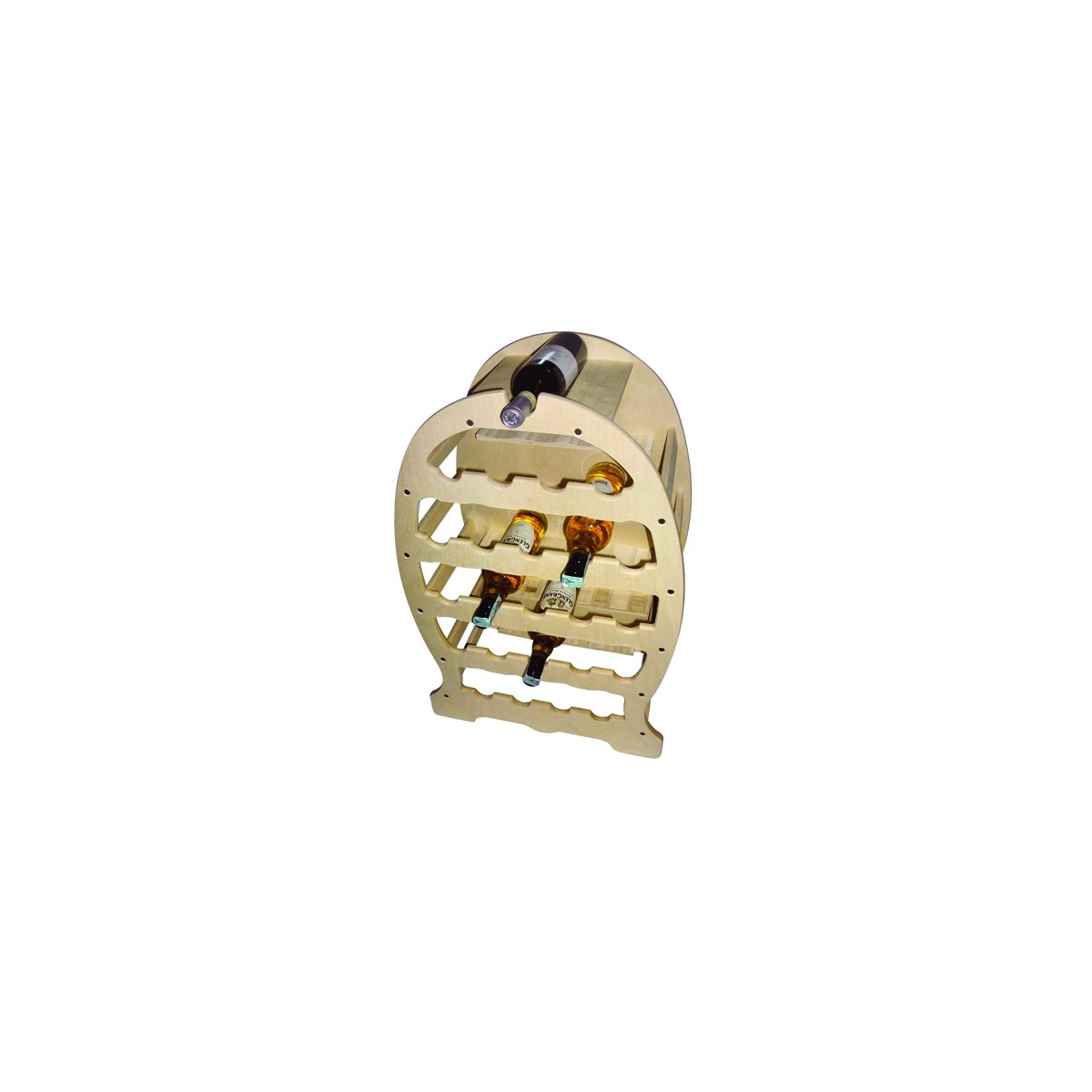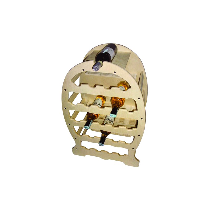 Cantinetta portabottiglie ovale forma di botte in legno di betulla, 34 posti.