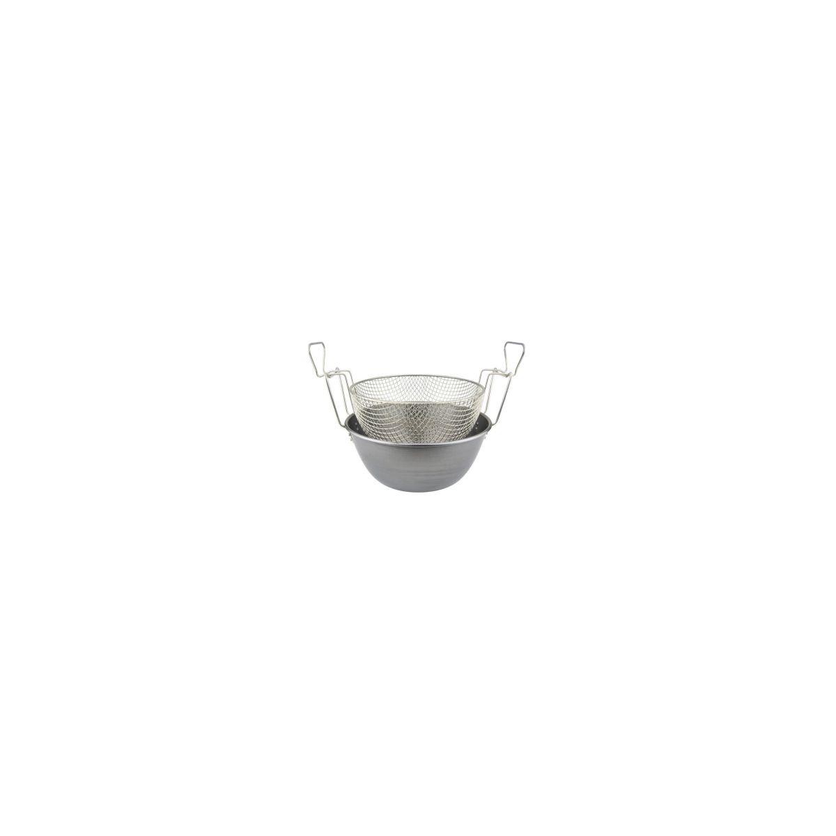 Friggitrice in Ferro spazzolato con cestello in rete metallica dal diametro di 32 cm. Il corpo della friggitrice è ampio e profondo per garantire fritture cotte a puntino, i manici alti permettono di movimentare la friggitrice senza rischiare di bruciarsi e di appoggiare il cestello durante la scolatura dell'olio, mentre i cestelli sono realizzati in robusta rete stirata con manici fissi. Questa friggitrice è indicata per realizzare cotture croccanti e fragranti fritture grazie alla sua capacità di mantenere la temperatura costante durante la cottura, consentendo la formazione della cosiddetta crosticina che rende il cibo più gustoso e appetitoso. Prima dell'utilizzo deve essere rimossa la patina protettiva applicata sulla superficie interna, per poi asciugarla con cura ponendo la friggitrice sul fornello per eliminare le eventuali tracce di umidità. In seguito consiglia di strofinare una piccola quantità di olio da cucina sulla superficie interna in questo modo si prepara il metallo a sopportare meglio il calore del fuoco quando si cucina. Per evitare l'ossidazione delle superfici si consiglia di non lavare la friggitrice ma di pulirla utilizzando della carta da cucina, nel caso la si voglia lavare si raccomanda di asciugare sempre con molta cura. Dopo la rimozione della patina protettiva, mantenere sempre la friggitrice leggermente unta con olio da cucina.