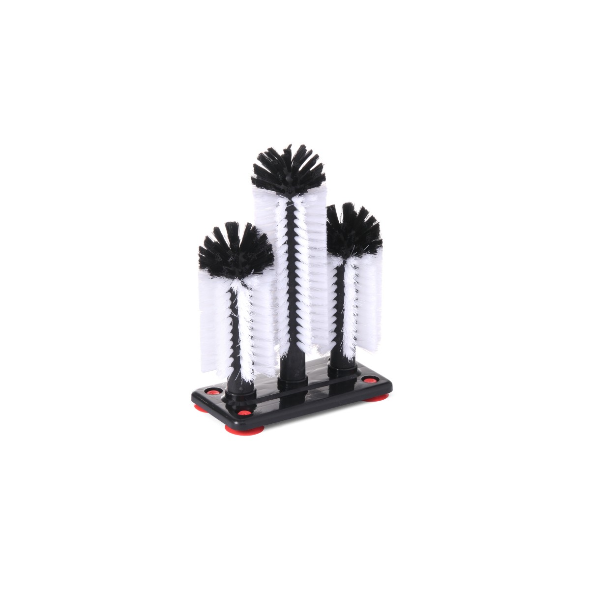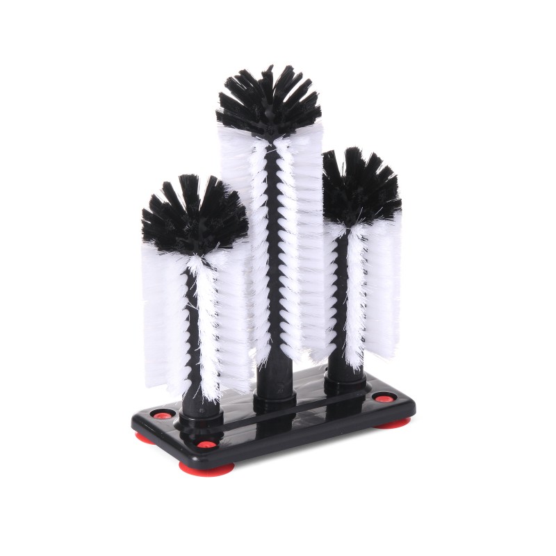 Plastica. Con 3 spazzole in nylon. Fondo con 4 ventose.