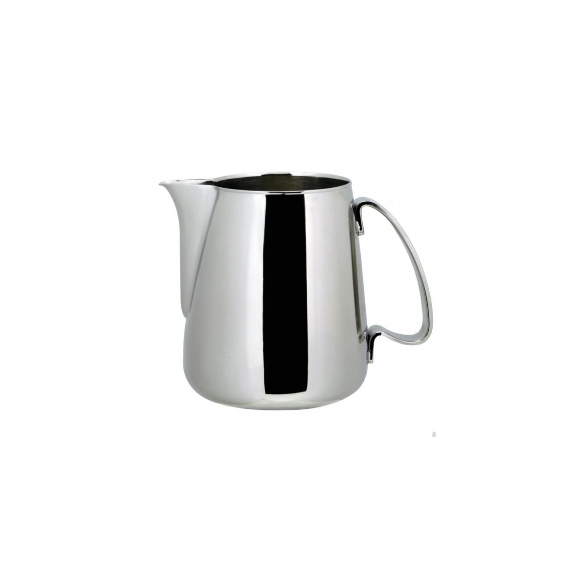 Lattiera in acciaio inox 18/10 della serie Anniversario studiata con caratteristiche specifiche per l'utilizzo professionale. La forma del becco permette di guidare con precisione il flusso del latte, facilitando l'operazione di decorazione nella preparazione dei cappuccini. La svasatura del bordo superiore consente di versare il latte con gradualità anche lateralmente, mentre l'inclinazione e la conformazione del manico consentono un facile movimento del polso, sia nella fase di montatura del latte che nel versarlo in tazza e decorare. L'ampia superficie d'appoggio della base facilita il raffreddamento del latte non utilizzato, riducendo il rischio di bollitura nel momento in cui esso sia scaldato nuovamente. Il raggio di curvatura in prossimità della base e la forma conica del corpo indirizzano il flusso del latte circolarmente nella fase di montatura, assicurando la formazione di una schiuma densa ed abbondante.