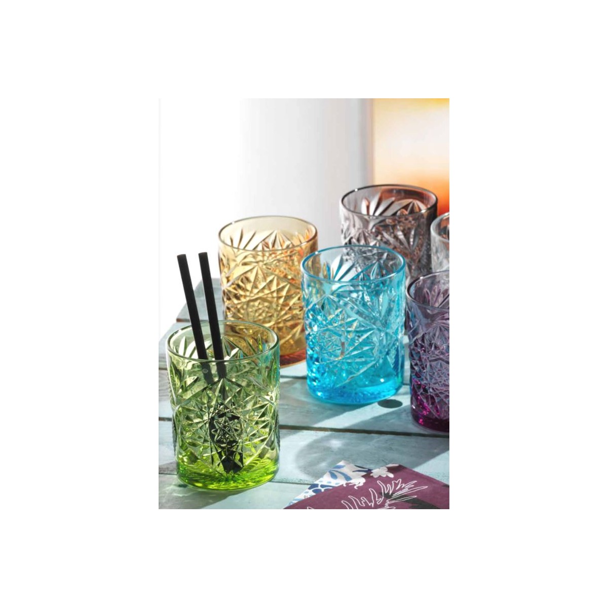 SET 6 BICCHIERI DI VETRO IN PASTA DI COLORE ML.300 - Vintage Blue
