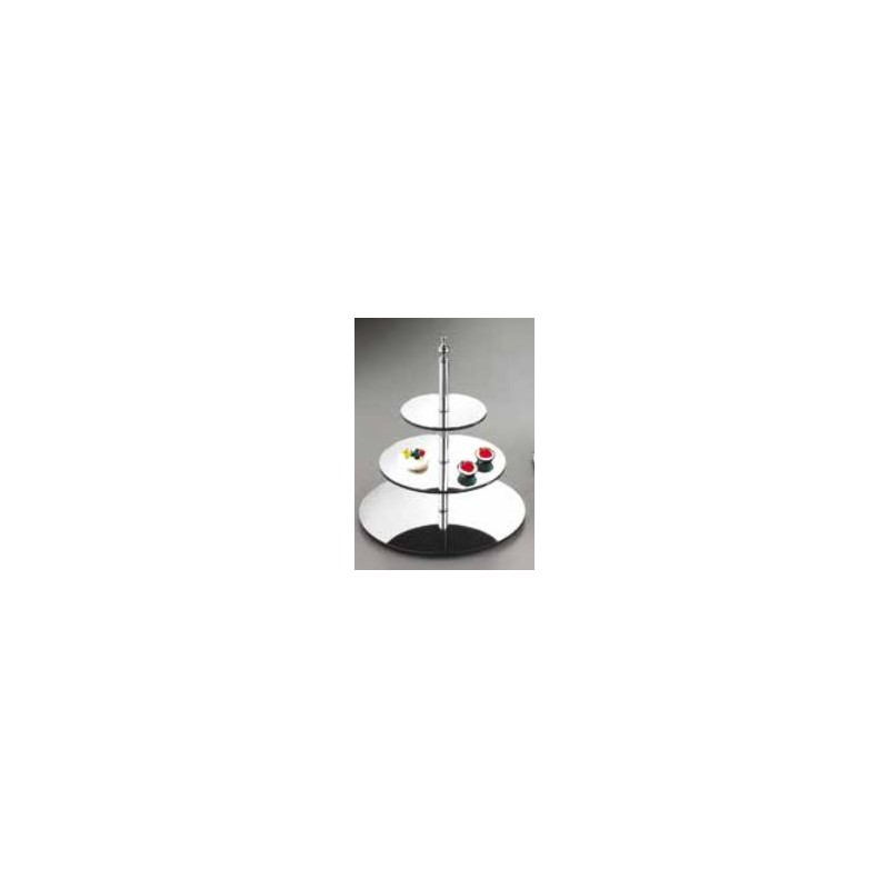 Elegante, luminosa e scenografica, l’alzata tonda a 3 piani con superfici a specchio è la scelta perfetta per valorizzare dolci, finger food, pasticcini o composizioni decorative in qualsiasi evento o buffet. Con una struttura solida e un’altezza totale di 50 cm, offre ampio spazio espositivo mantenendo un ingombro contenuto.