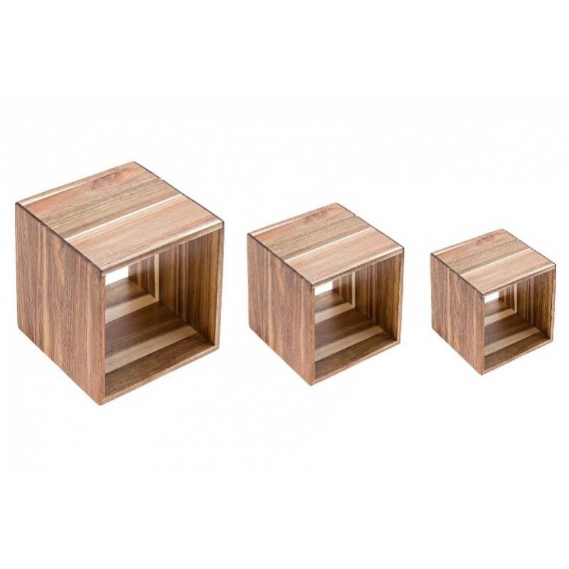 Set di tre cubi in acacia per buffet 13x13x13 cm, 18x18x18 cm, 23x23x23 cm