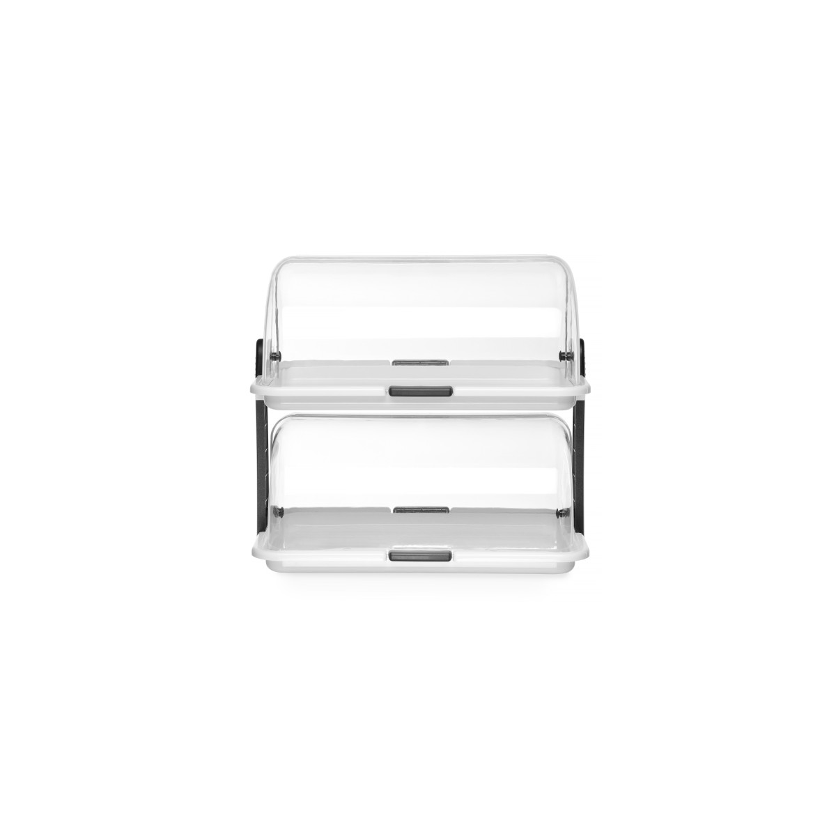 Per servire formaggi, salumi, pane, torte o snack. Coperchio trasparente Roll Top realizzato in polistirene. Pratico accesso al cibo servito da entrambi i lati della vetrina. Display perfetto. Protegge il cibo da fattori esterni. Facile da pulire. Montaggio/smontaggio rapido. Colore vassoio: bianco Progettato e prodotto al 100% in Italia. Non contiene bisfenolo A nocivo. Lavabile in lavastoviglie.