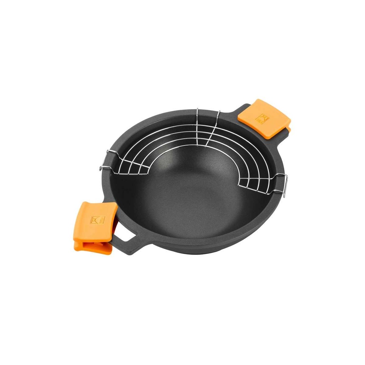 La struttura ampia e profonda (h 10,8 cm, 5,5 litri di capacità) consente una distribuzione uniforme del calore e una grande praticità in cucina. Design moderno con finitura arancione, un tocco di stile per ogni piano cottura.