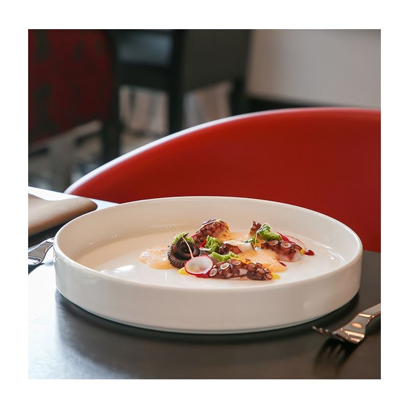 Con un diametro di 23 cm e un’altezza di 4 cm, questo piatto fondo unisce un design moderno e minimalista a una struttura solida, pensata per resistere all’uso intensivo quotidiano in ristoranti, hotel, catering ed eventi.