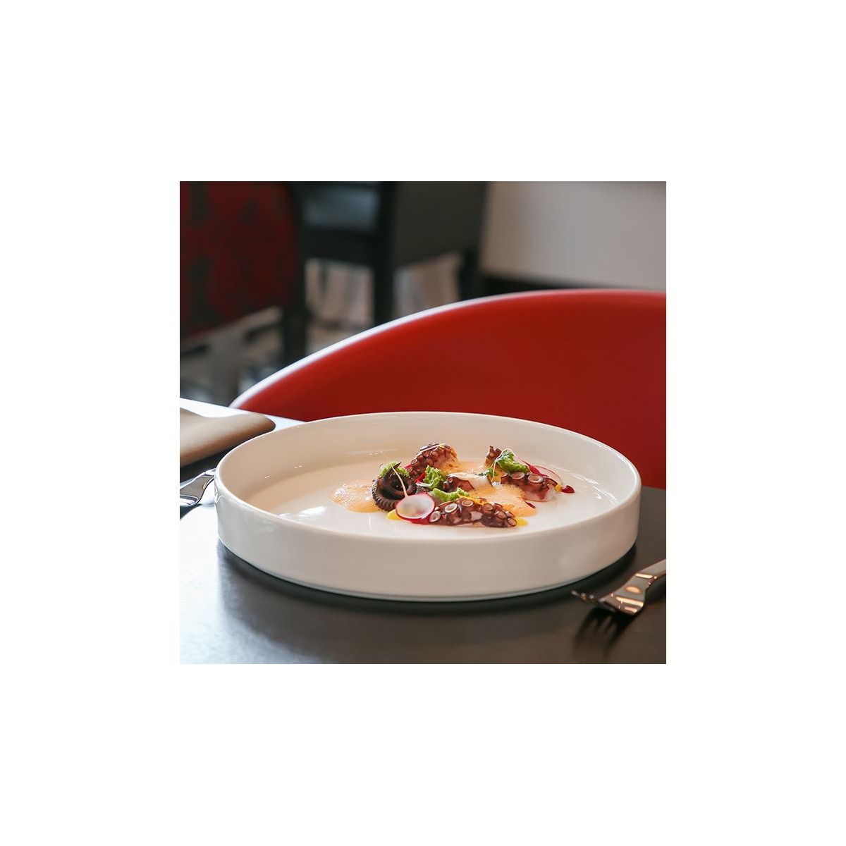 La linea Nordic di Rak Porcelain si distingue per le sue forme pulite e contemporanee, ideali per una mise en place sobria ma di grande impatto visivo. Il colore neutro lo rende adatto a qualsiasi stile di tavola.