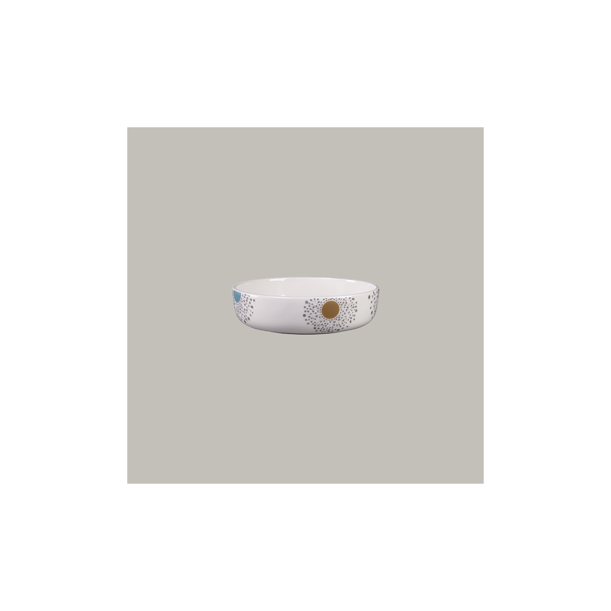 Materiale : Pietra Rak Forma: rotonda Ispirazione: a colazione Dimensioni complete : Ø 20 cm / Ht. 5,8 cm/cont. 120 cl Peso (kg): 0,64 KEABW20D208