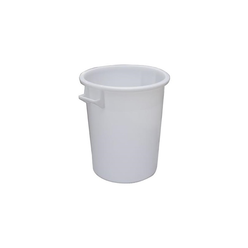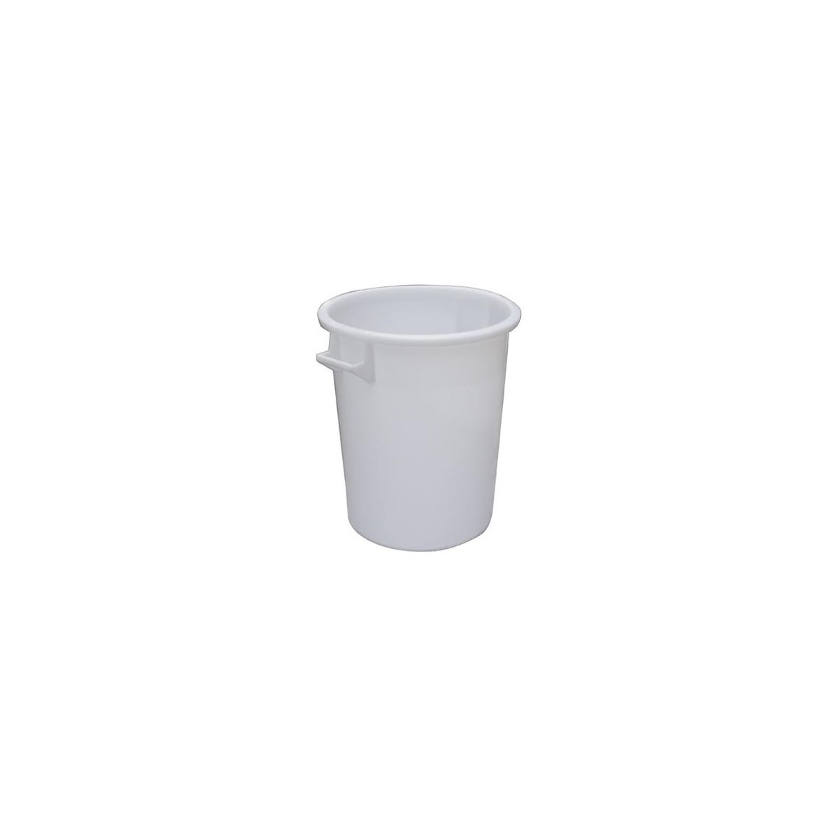 Bidone industriale in PEHD (Polietilene ad alta densità) di colore bianco neutro, con protezione anti-UV e riciclabile al 100%. Idoneo al contatto alimentare.