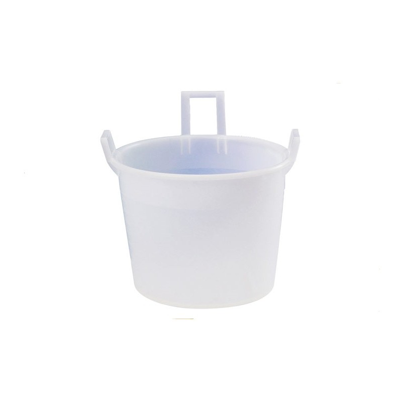 Mastello a tre manici in PELD (Polietilene a bassa densità), di colore bianco neutro.