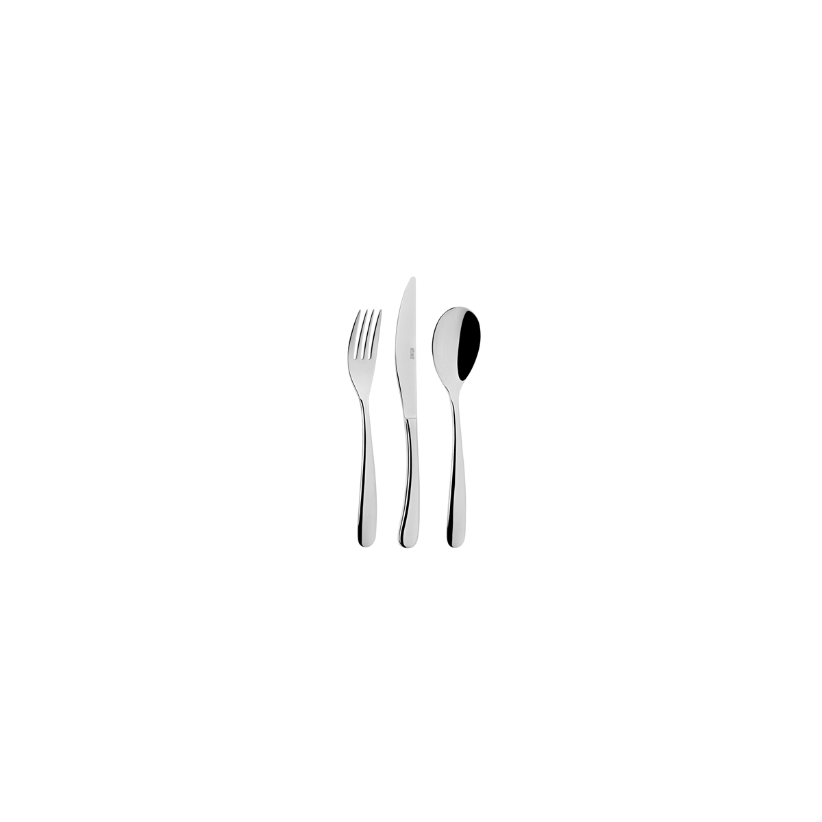 Il set comprende 12 cucchiai da tavola della linea Clever firmata Abert, realizzati in acciaio inox 18/10 di alta qualità spessore 3mm, sinonimo di resistenza, brillantezza e durata nel tempo.