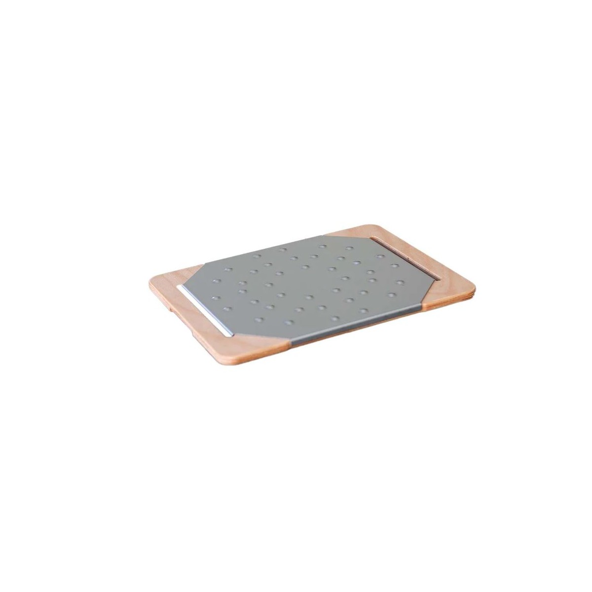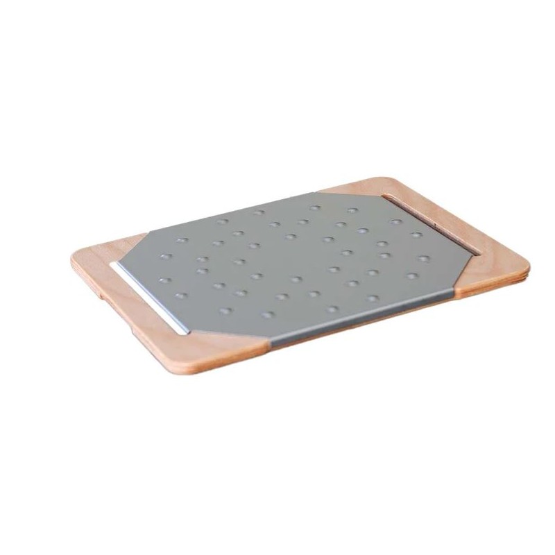 Tagliere composto da supporto in legno dimensioni 38x33 cm e piatto inox 33x33cm.
